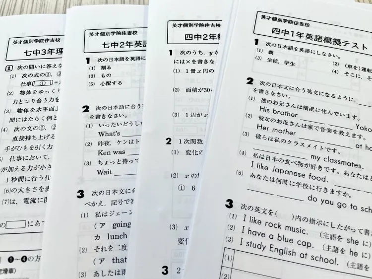 深川第一中学校、深川第四中学校、深川第七中学校、大島西中学校の模擬テストをご用意。