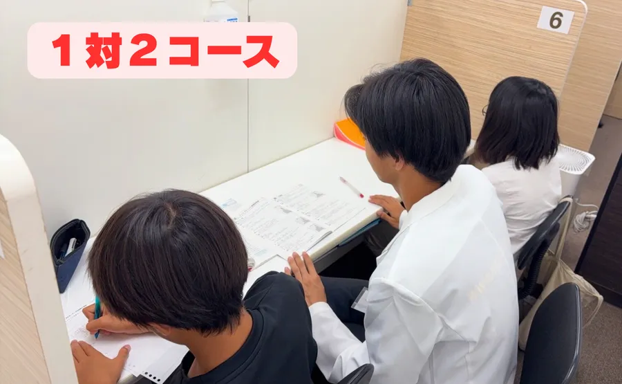 英才個別学院住吉校は、1対1と1対2の2コースをご用意しております。一つのブースで講師が生徒の隣に座って授業をします。
