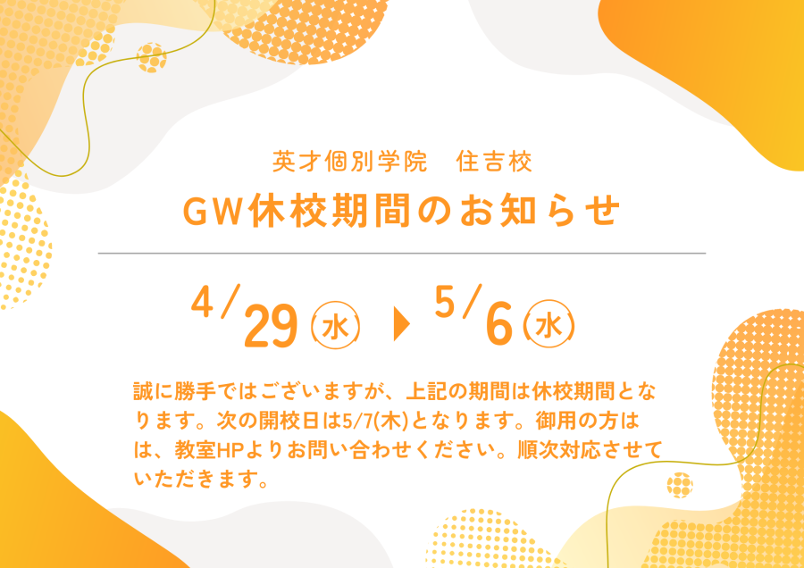 8月11日(月)~8月16日(土)は夏期休校期間となっております。