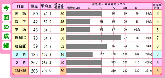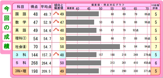 ふたりとも5科目の偏差値は50。3科目の偏差値もほぼ同じ。