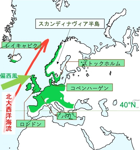 では何故こんなに高緯度地域なのにも関わらずヨーロッパは温暖なのでしょうか。