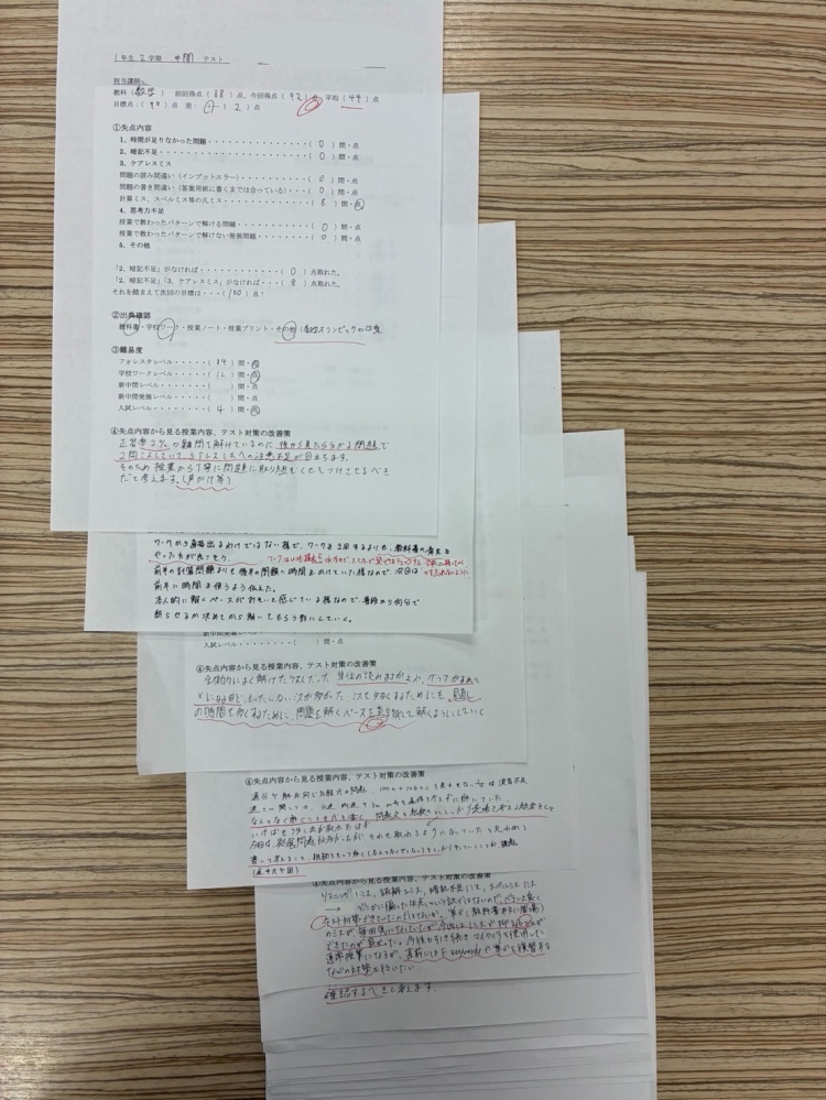 テスト分析の用紙を使います。