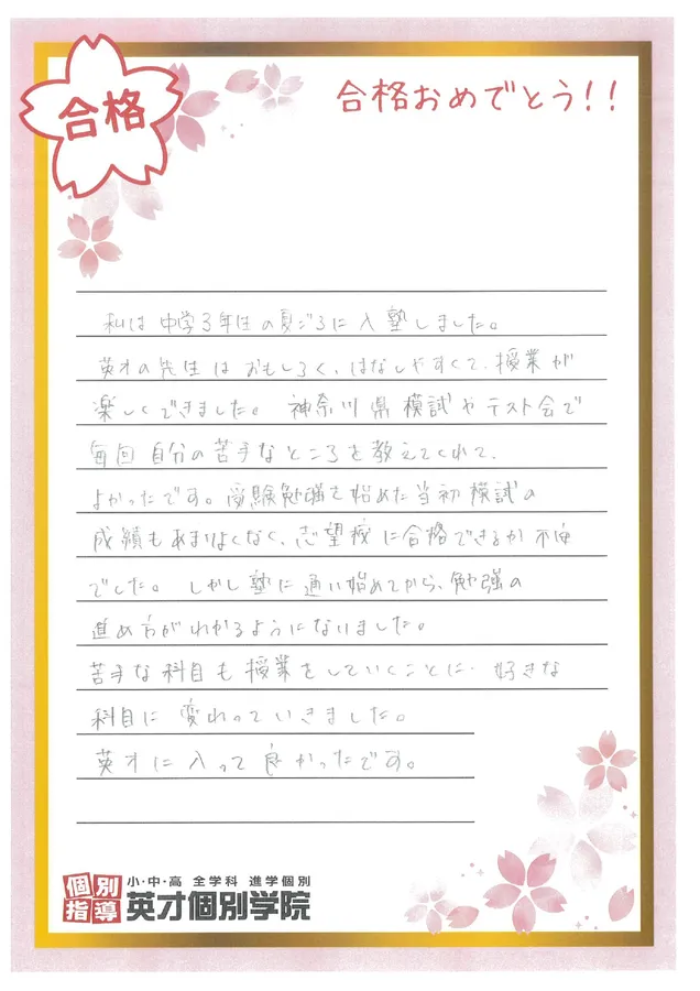 英才に入ってよかったです。