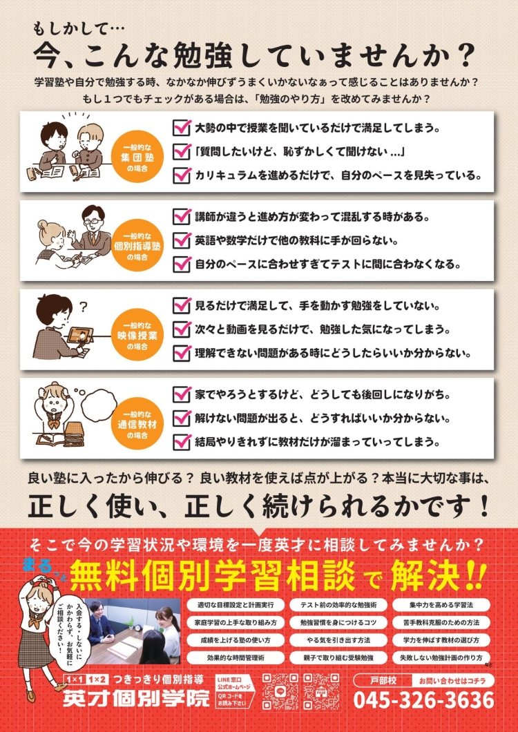 また、英才では無料の個別学習相談会も行っています!