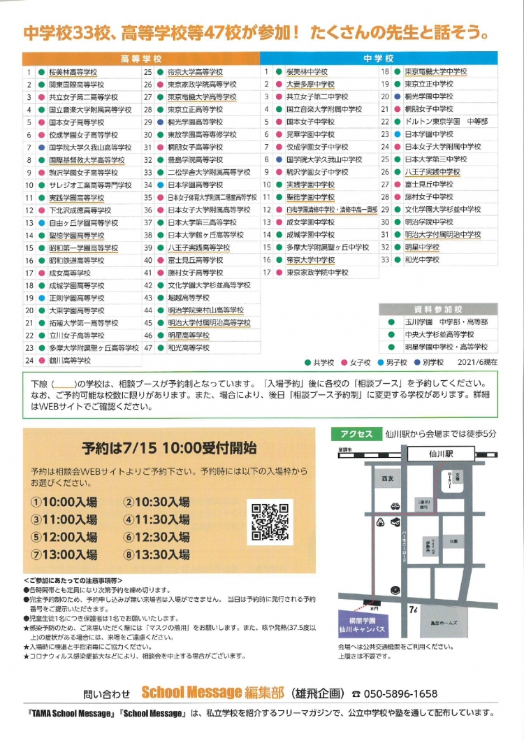 サムネイルにあるように近々京王線沿線でも学校説明が開催されます。