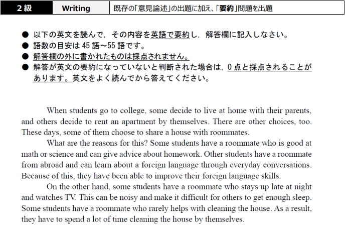 〇1級~2級は要約問題が新たに出題