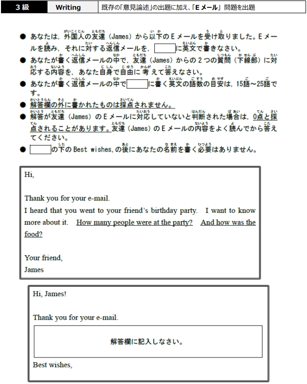 〇準2級、3級はEメール問題が新たに出題