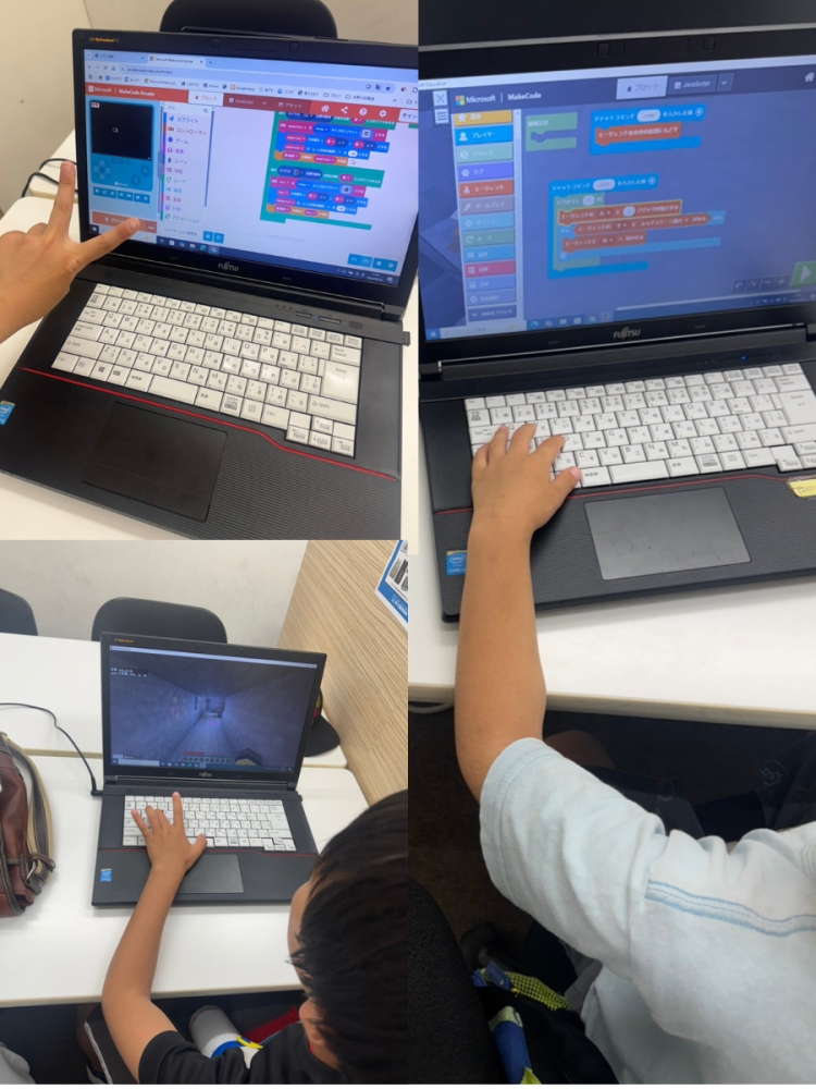 矢野口校では人気ゲームのマインクラフトを通じてプログラミングを学ぶ「コードアドベンチャー」