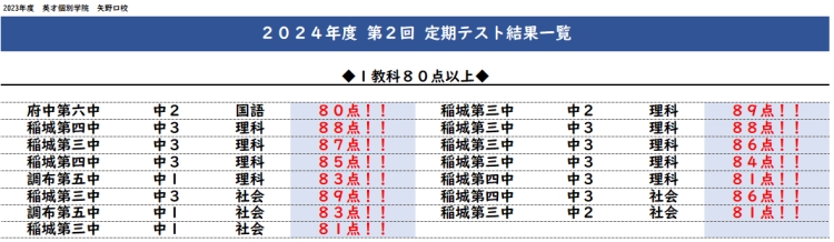 夏期講習期間も夏期講習テキストと同時並行してテスト対策を行い、さらに、新学期開始後はテスト対策会を開催し徹底してテスト対策を行いました。
