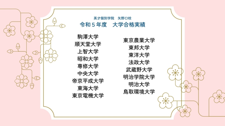 また、昨年度の矢野口校の大学合格実績はこちらです!