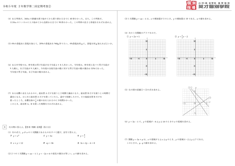 「数学は一次関数を徹底的に練習したい!」