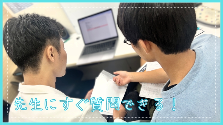 『➂ いつでも質問できる安心感』「どうしても理解できない」「解き方の糸口がつかめない」そんなときは、すぐに講師へ質問できます!分からない部分をその場で解決できるので、勉強の流れを止めずに進められます。