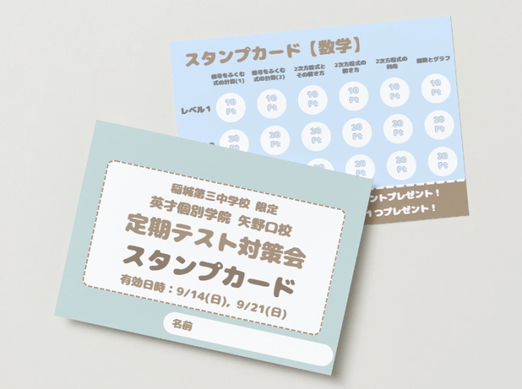 🌟今回だけの特別企画も!🌟今回はなんと、参加者だけの限定スタンプカードを大放出!✨教室にあるレベル別の問題をクリアするごとに、どんどんポイントがたまっていきます!さらに!学校のワークを終わらせた子には、科目ごとに50ポイントを追加ゲット🔥