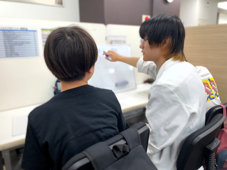 Q. なぜ講師を始めたのですか?高校生の頃から、友達に勉強を教えるのが好きでした。「ここってこう考えると分かりやすいよ」と説明して、相手が「なるほど!」となる瞬間が、純粋に嬉しかったんです。また、去年は別の塾で教えていた経験もあり、改めて 『教えることが自分は好きなんだ』 と実感しました。生徒が自分から勉強に興味を持ってくれて、「勉強がちょっと好きになった」と言ってくれる――その瞬間に立ち会えることが、講師を続けている一番の理由です。
