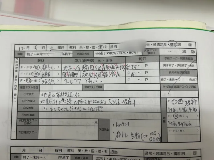 正答率・弱点など次の授業でも確認して欲しいことはしっかり共有をしていきます。