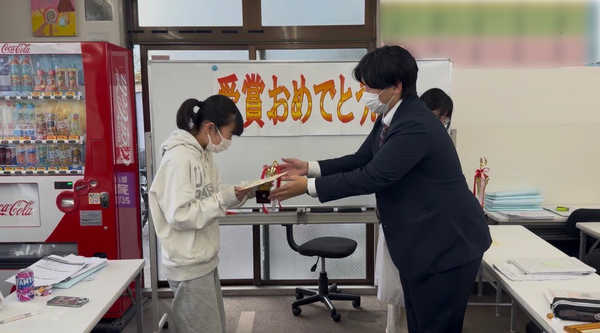 先日のテスト対策会で前回テストの優秀者へ表彰状授与を行いました!