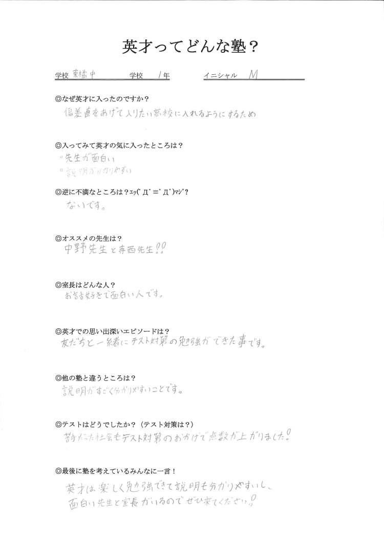 今年の最初に入会したMさん。お母さまも学業にはご理解をしてくれていて、