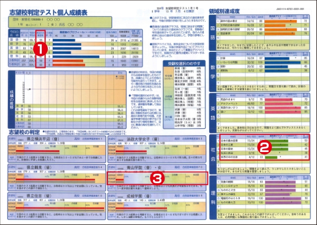 ①こちらは偏差値となります。自分の点数だけでなく今の立ち位置をしっかり確認 :idea:
