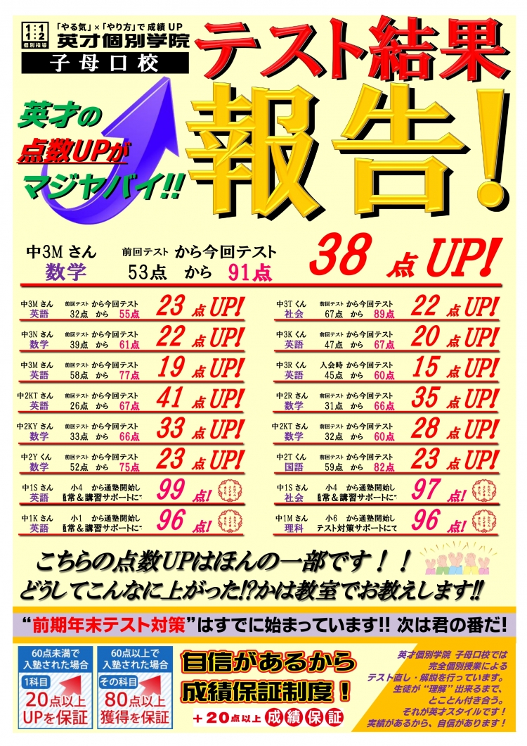 個別塾なので、1人ひとりの成績アップ率に自信があります!!!