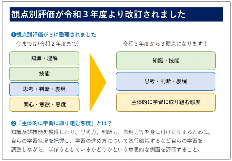 内申点を決定づける観点別評価が改訂され2年目になりました。