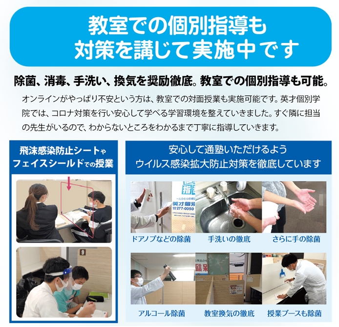 英才個別学院 子母口校では、新型コロナウィルス感染症対策を徹底しております!