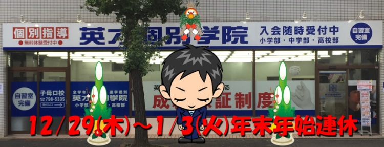 つきましては12/29(木)~1/3(火)までは休校期間となります。