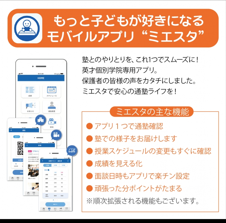 英才個別学院ではミエスタというアプリを通じて、