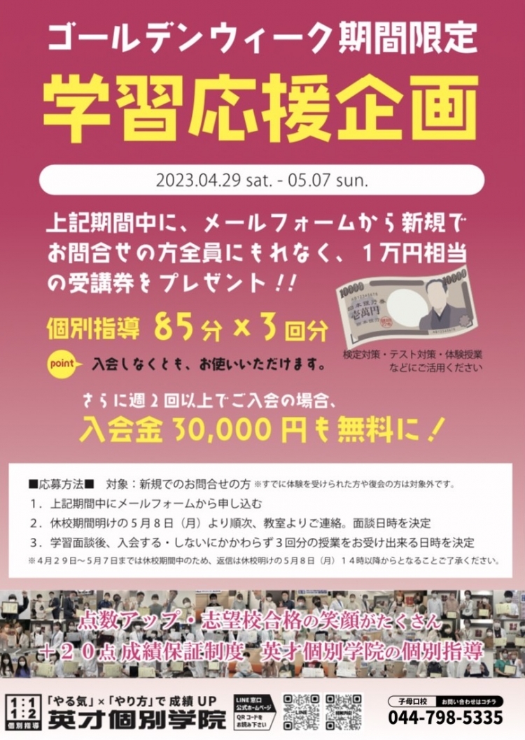 こんにちは。英才個別学院 子母口校 教室長の室山です。