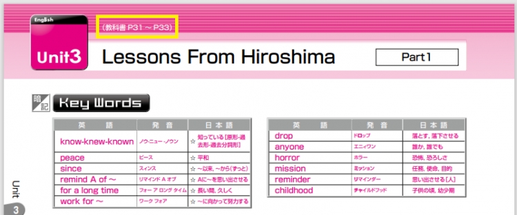 上記黄色のところをご覧いただくとわかるように、常に学校教科書と