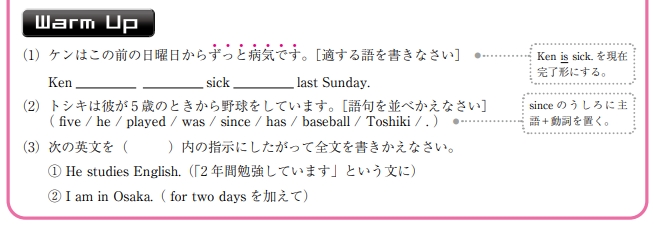 Warm Upでは先生と一緒に解きながら質問したりされたりしながら、