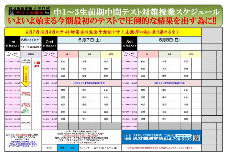 “点数がしっかり上がる”テスト対策会をご用意しました