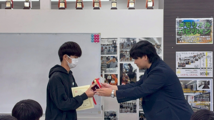 中3Yくん 総合点トップ賞おめでとう!
