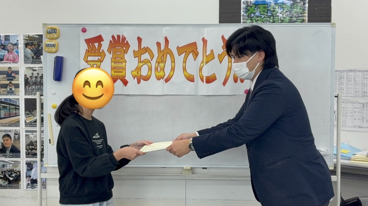 先日のテスト対策会で前回テストの優秀者へ表彰状授与を行いました!