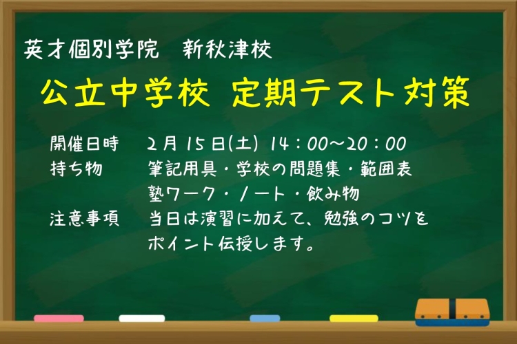 テストまであと3週間!! 英才は無料テスト対策実施します!