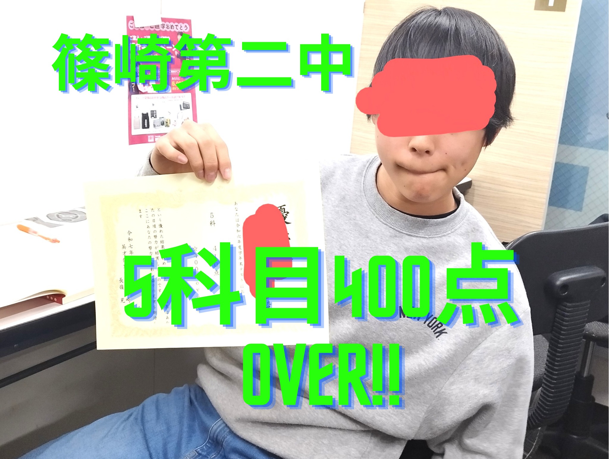 今回は、中1の後半から英才に通ってくれて、