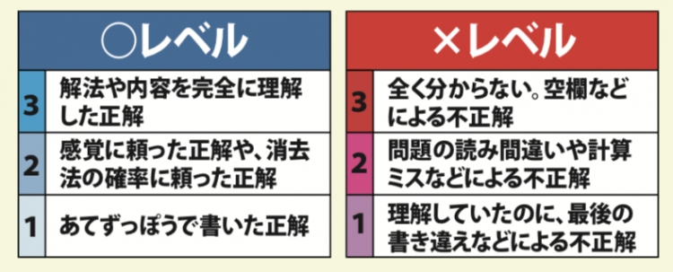 ○なら正解、×なら不正解でくくってはいけません。○の中にも、理解して正解したものもあれば、