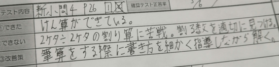 先生も改善策として、「筆算をする際に書き方を細かく指導しながら解かせる」と
