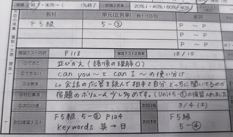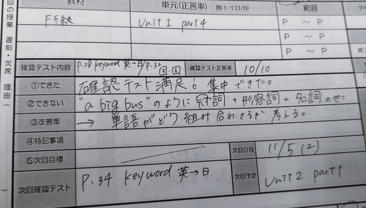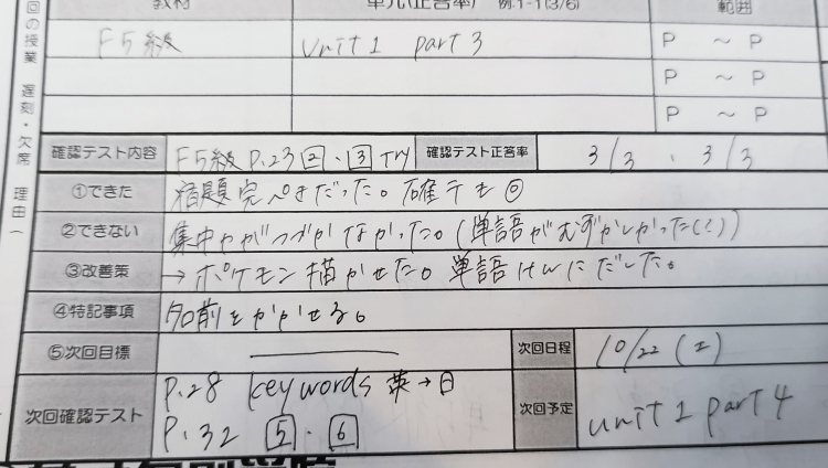 お母様にも英単語の暗記や確認テストをご自宅で実施していただきました。