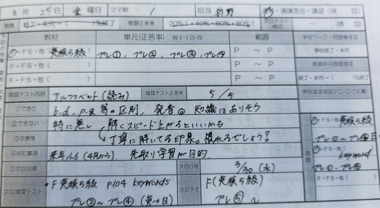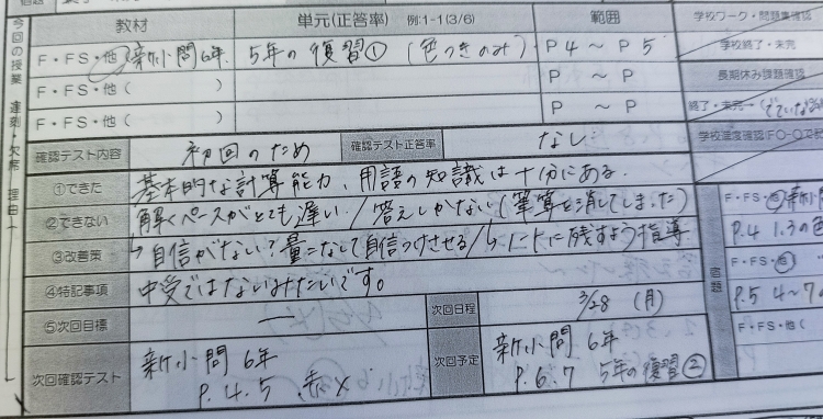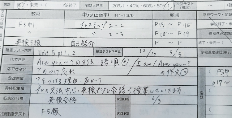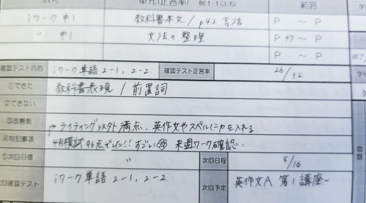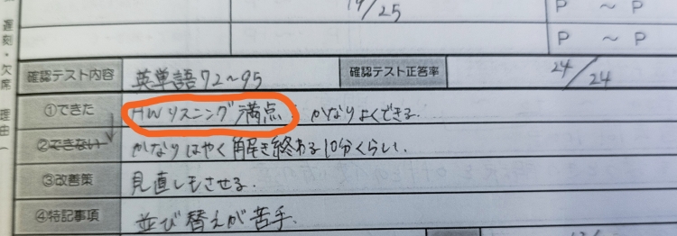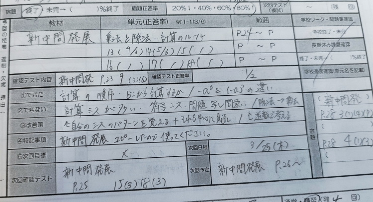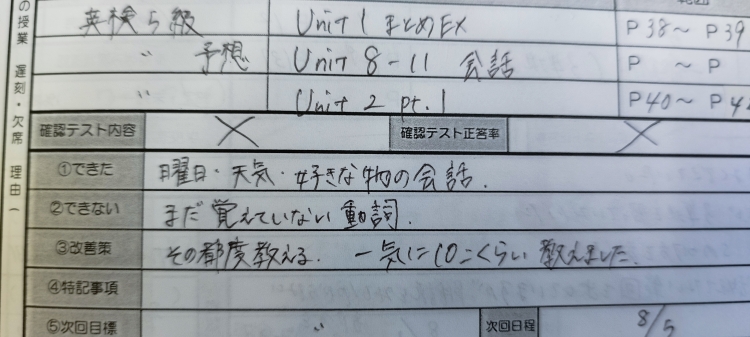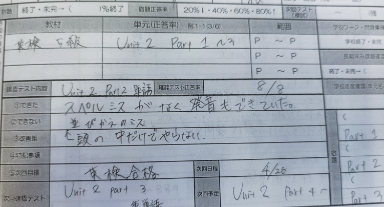 学校ワークを解くことができていた、英才のテスト対策会に参加できていた。