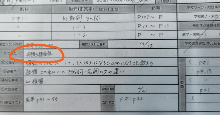 英検5級合格!おめでとうございます!