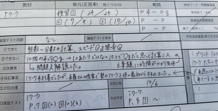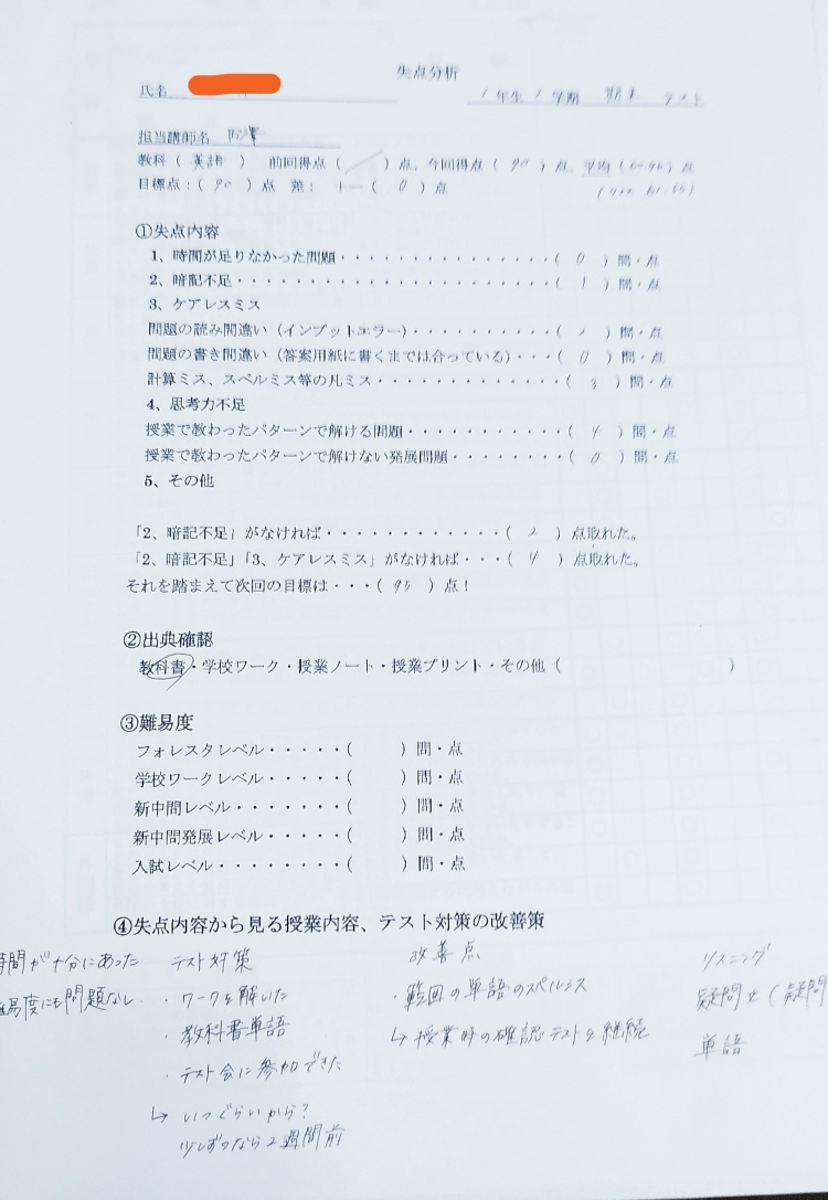自分のミスのパターンを見直してもらっています。