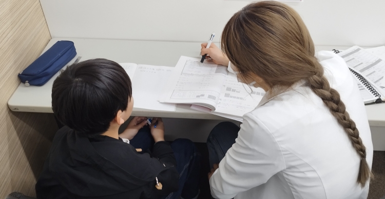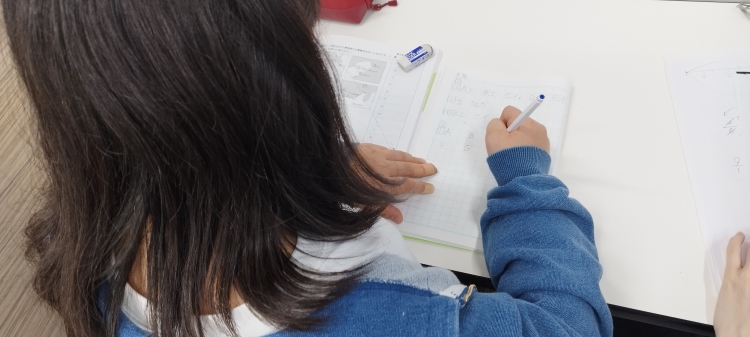 新小5、算数の授業。ニコニコして塾の授業を受けてくれています。