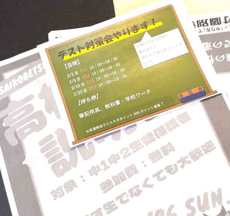 冬休み中から今回の塾内テストに向けた対策問題集を配布し、テストに向けての意識付けをしてきました。