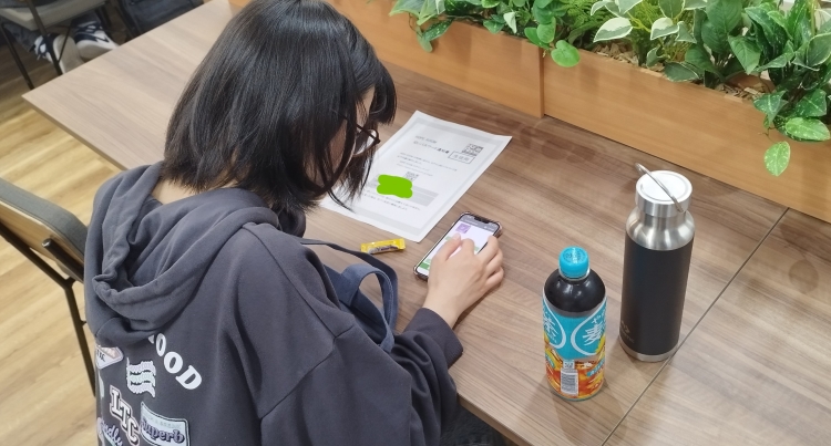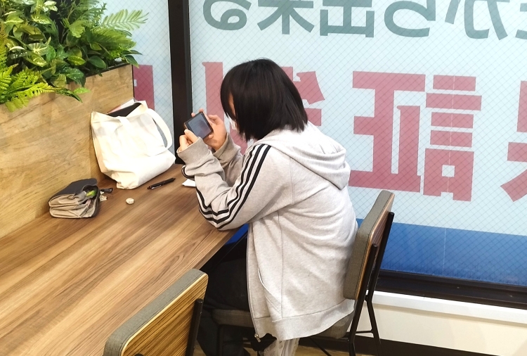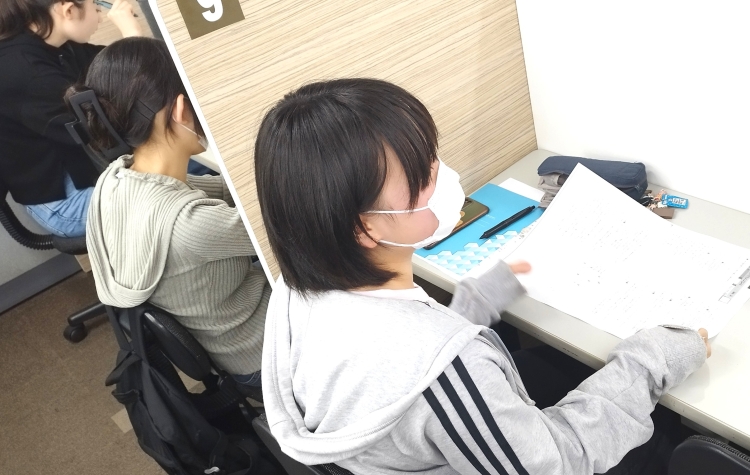 確認テストが終わった生徒は、持参した勉強道具、学校ワークなどの