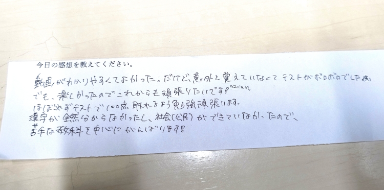 5教科映像を見てテストを行いましたが覚えるのはもちろん、