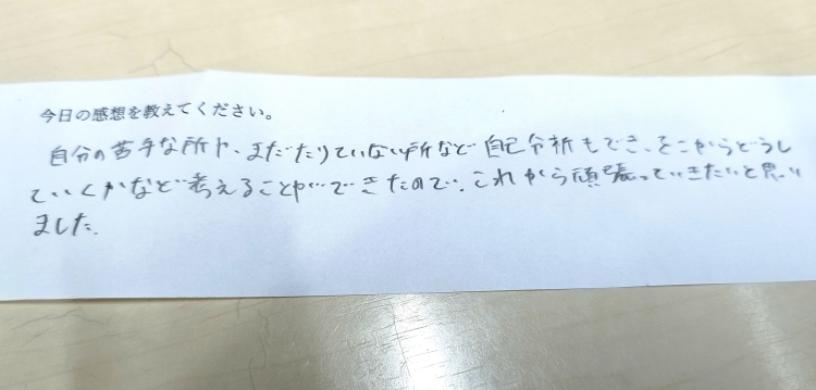 これから頑張っていきたいと思いました。