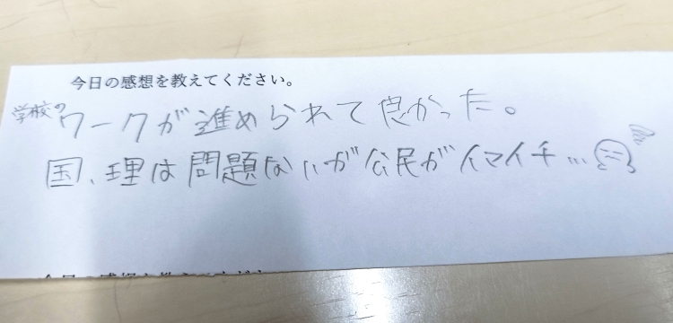 学校のワークが進められて良かった。