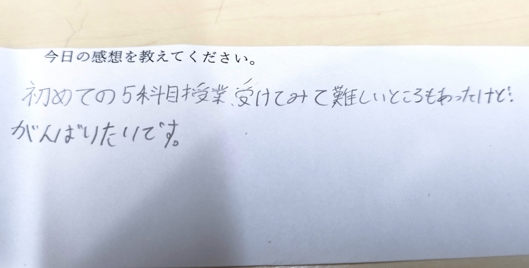 初めての5科目授業、受けてみて難しいところもあったけど、