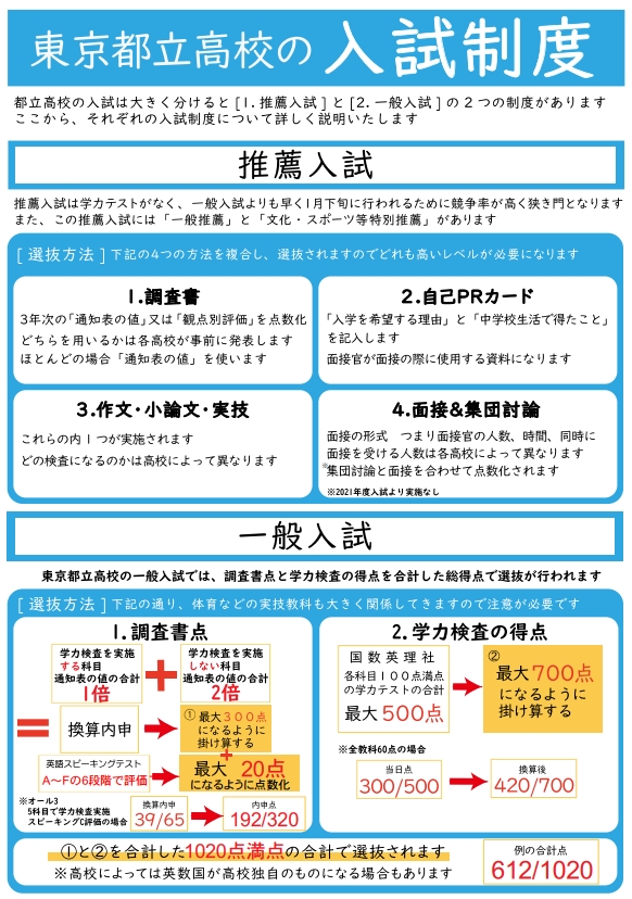 都立高校入試は内申と入試の得点の違い等について説明いたしました。
