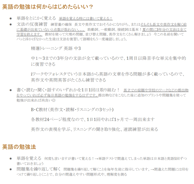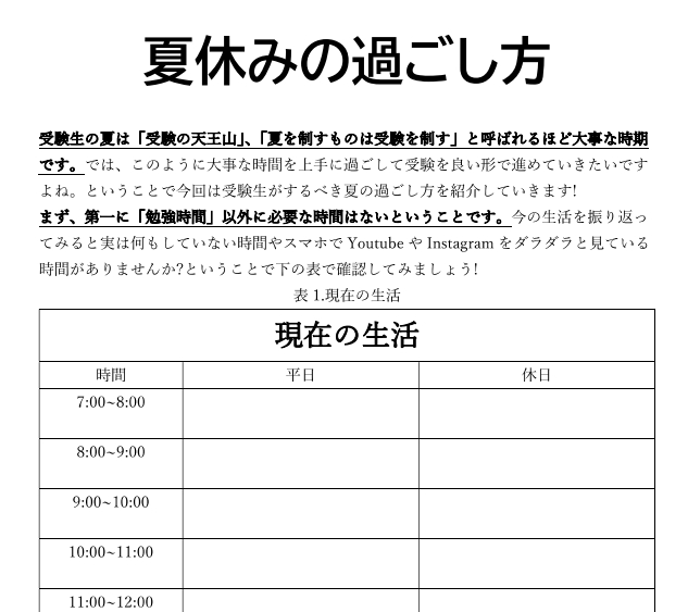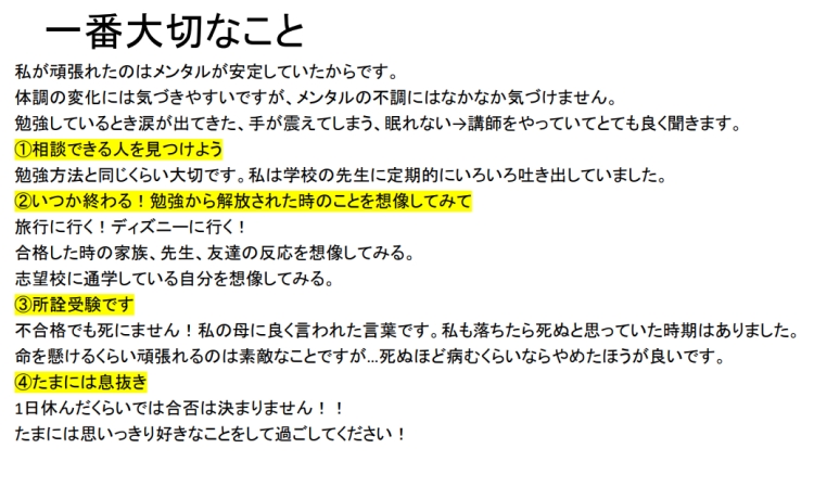 自身の経験や失敗談・成功体験、勉強の仕方、夏の過ごし方など